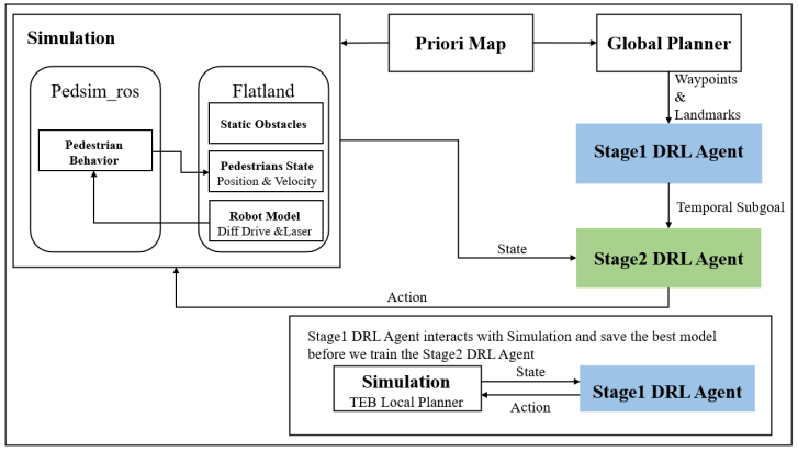 A Two-Stage Reinforcement Learning Approach for Robot Navigation in Long-range Indoor Dense Crowd Environments Xinghui Jing *, Xin Xiong *, Fuhao Li, Tao Zhang, Long Zeng International Conference on Intelligent Robots and Systems (IROS 2024)[paper] |