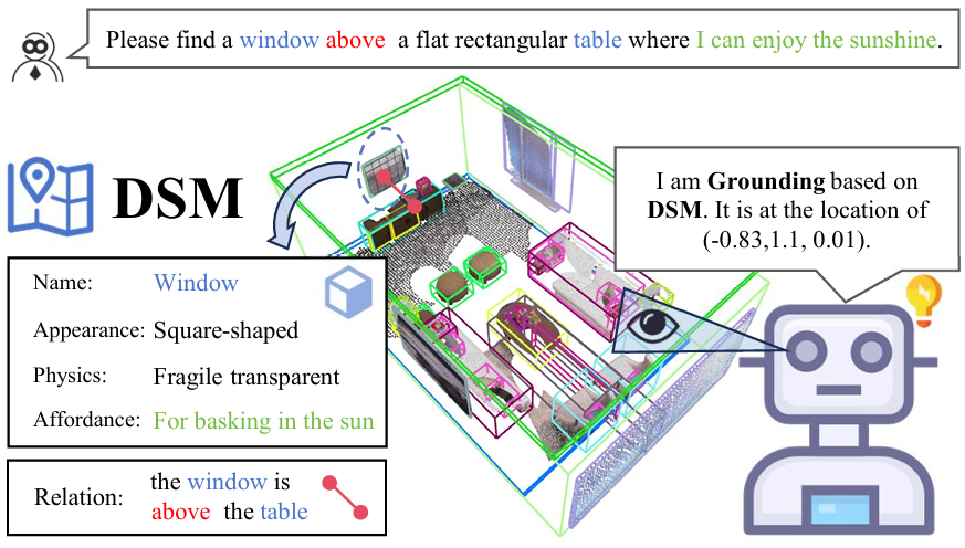 DSM: Constructing a Diverse Semantic Map for 3D Visual Grounding Qinghongbing Xie *, Zijian Liang *, Fuhao Li, Long Zeng arXiv 2025[paper] [project page] |