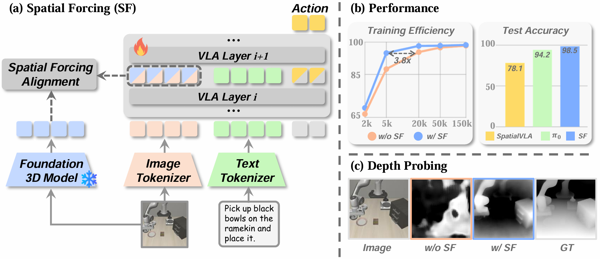Spatial Forcing: Implicit Spatial Representation Alignment for Vision-language-action Model Fuhao Li *, Wenxuan Song *, Han Zhao, Jingbo Wang, Pengxiang Ding, Donglin Wang, Long Zeng, Haoang Li arXiv 2025[paper] [project page] [github] |